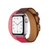 The Bordeaux/Rose Extrême/Rose Azalée Double Tour Leather for Apple Watch is a striking piece. The beautiful leather and visible stitching boast an equestrian feel, while the extra-long length wraps twice around the wrist, creating a unique and chic statement piece. Our Bordeaux/Rose Extrême/Rose Azalée Double Tour Leather for Apple Watch is one that will surely impress.