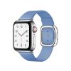 Our Cornflower Modern Buckle for Apple Watch features a smooth top-grain leather that is lightly milled and tumbled to maintain its refined texture. The band gives the appearance of a modern-style buckle, which in reality, is a 2-piece magnetic closure.