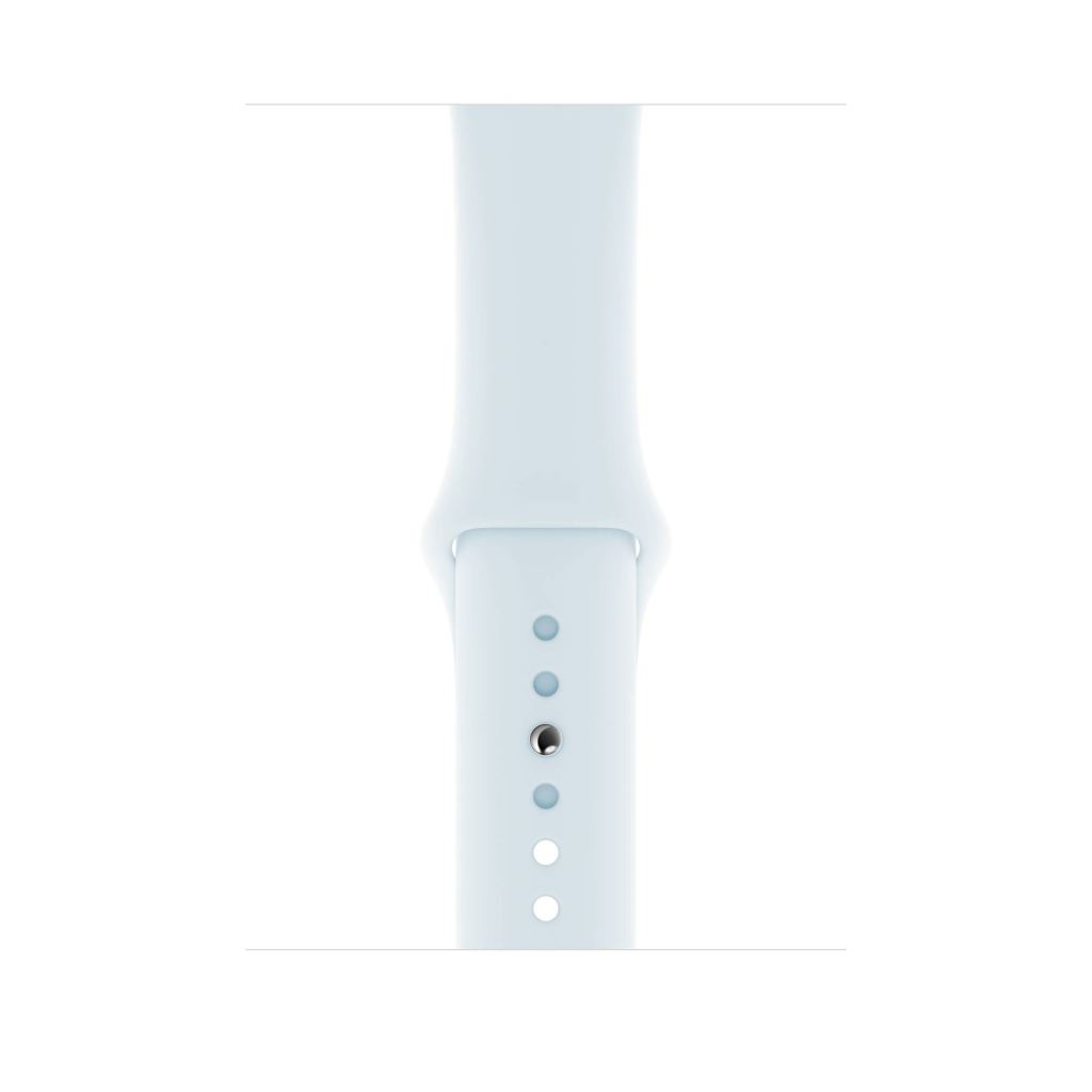 Made from a custom-developed high-performance fluoroelastomer, the Sky Blue Sport Band for Apple Watch is durable and strong, yet surprisingly soft. The smooth, dense material drapes elegantly across your wrist and feels comfortable next to your skin. An innovative pin-and-tuck closure ensures a clean fit.nn n